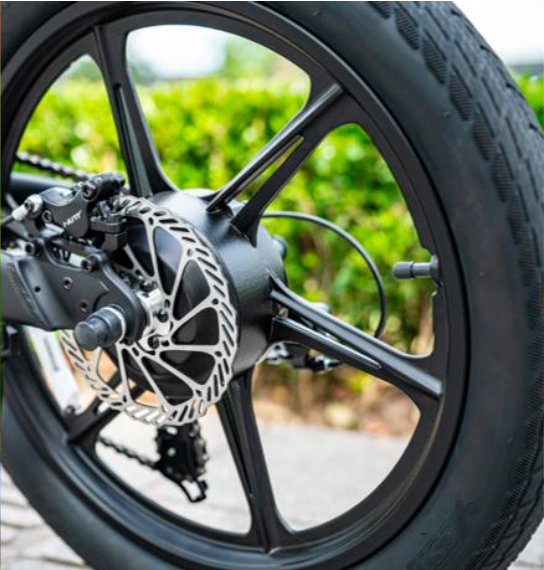 Rated 500W MXUS geared brushless rear motor provides smooth acceleration with a top speed of 27 MPH.